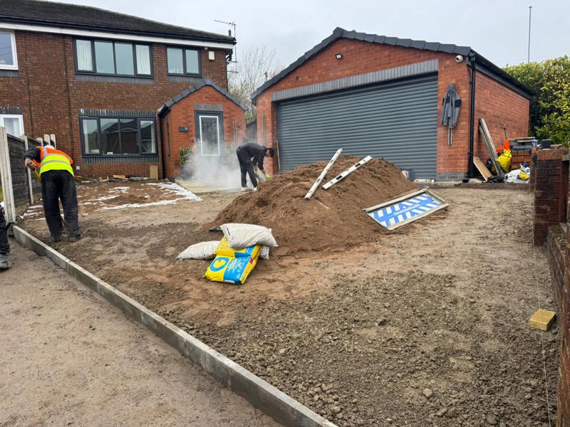 Heavy machinery was used to achieve consistent levels across the large driveway footprint.