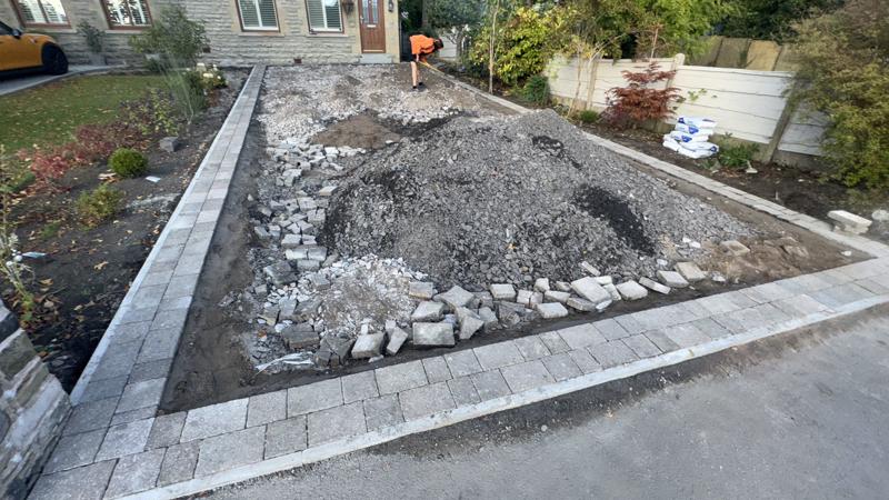 The existing surface was fully excavated and removed, including old materials and unstable ground. Levels were reprofiled to improve drainage and ensure safe gradients across the sloping driveway.