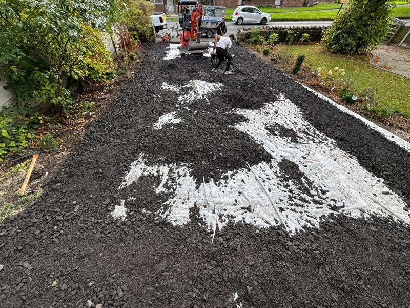 A heavy-duty geotextile membrane was installed across the driveway to prevent ground movement and contamination between soil layers. This improves long-term stability and prevents future sinking or rutting.
